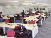 ユビキタス技術を用いた「フリーアドレス方式」のオフィスを構築。重装備化するネットワーク環境を支えるD-MOLOの機能性をご評価いただきました。ネットワークが配備されたD-MOLOのプラットフォームの上に幅2400ミリの天板を乗せ、複数のワーカーで共有。時間や場所にとらわれず、情報にアクセスできる「新しいワークスタイル」を構築されています。