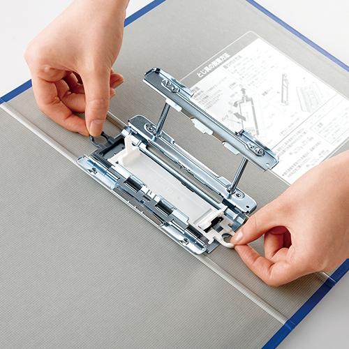●脱着パーツは綴じ具から簡単に取り外せて、分別廃棄の手間が減らせます。省スペースのスリム設計ながら、収納量は従来のまま。