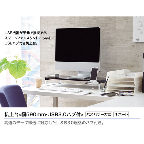 【リヒトラブ】机上台 幅590mm(USB3.0ハブ付) |