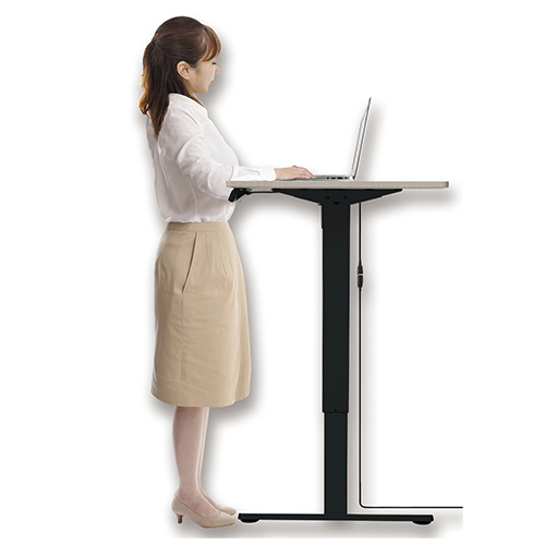 ●オフィスからテレワークまで心地よいデスクワークをサポート。電動昇降デスクとデスクサイドワゴンでビジネス環境の作業効率をUP!!電動で簡単に昇降でき、立っても座ってもデスクワーク可能。