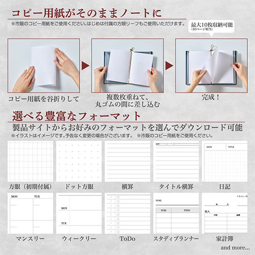 - ●最大収納枚数:ノート=A4サイズ10枚(40ページ相当),ファイル=A5サイズ20枚/A4サイズ10枚